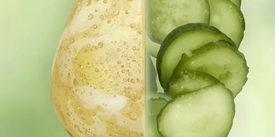 Why it works: Potato enzymes and cucumber calm and lighten naturally.